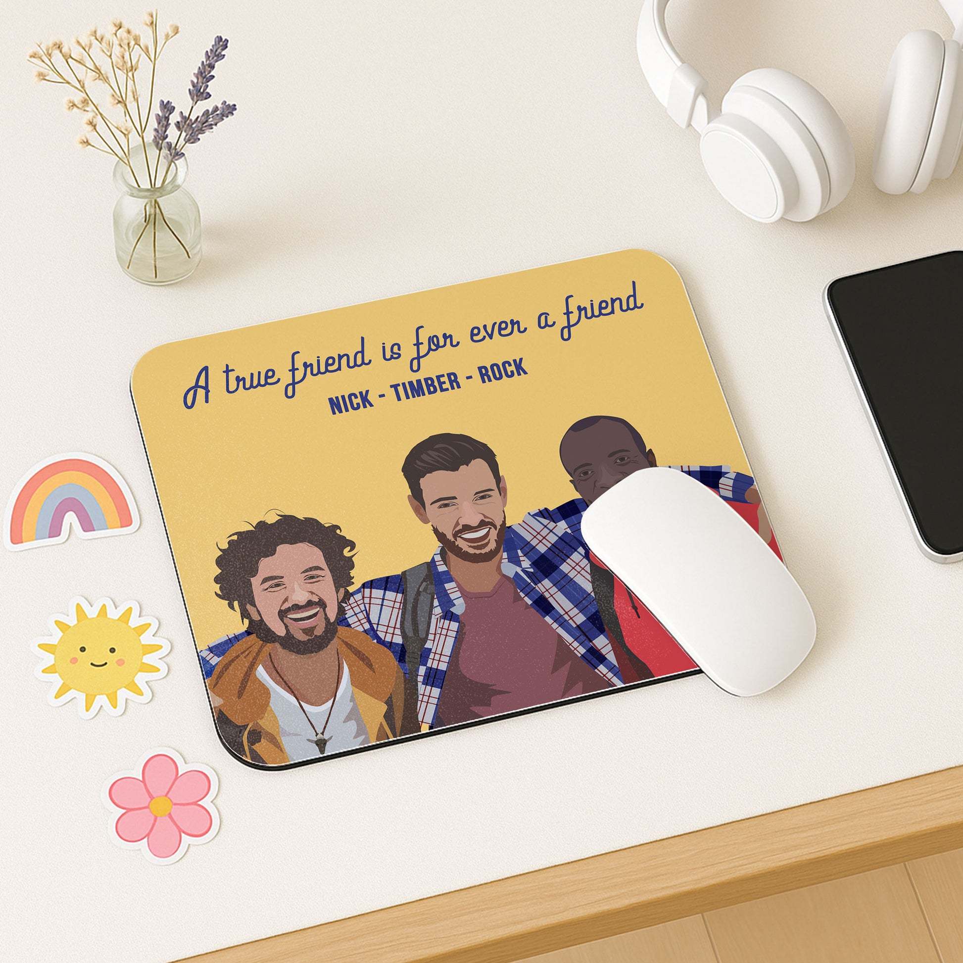 "Gliding my hand across it, the illustration of our best friend picture turns the mouse pad into a vibrant gift celebrating our friendship. The bold lines and energetic colors radiate the same joy and spontaneity we share, transforming my desk into a canvas of our connection. It’s a thoughtful piece that keeps our adventures close, making every workday moment a cheerful reminder of the loyalty and laughter that define our bond."